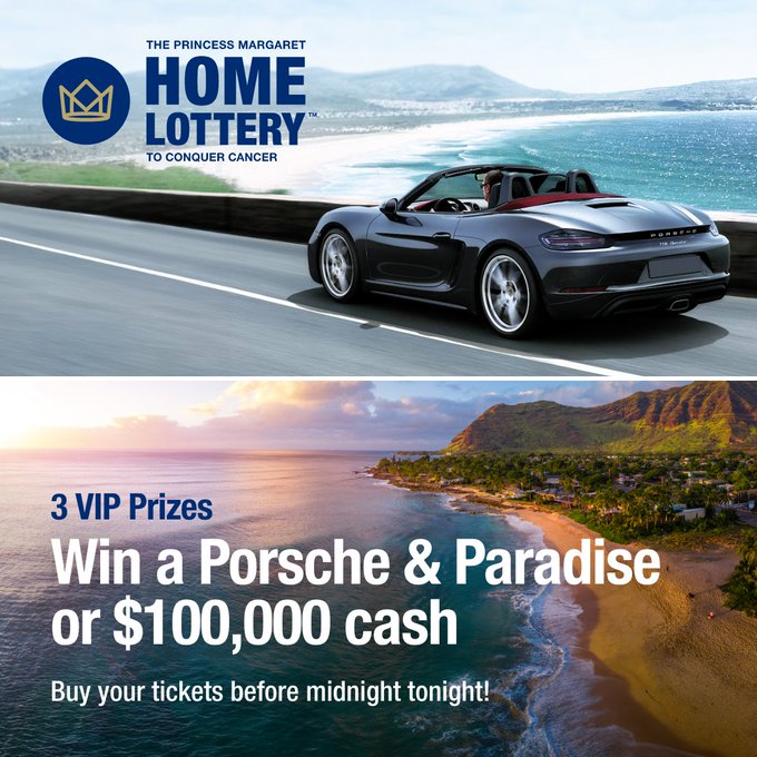 @thePMCF The moment we’ve been waiting for is finally here! Get your tickets before midnight tonight for the chance to win over 16,000 amazing prizes. Plus, you’ll be supporting life-saving cancer research at The Princess Margaret. Order tickets heprincessmargaretlotto.comOwCEX
