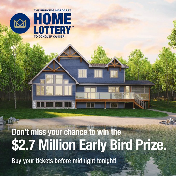 @thePMCF No, you’re not dreaming — a Kawartha lakefront cottage and $50,000 in cash could be yours. The Early Bird Prize Deadline is midnight tonight. Click the link to order your Princess Margaret Home Lottery tickets nprincessmargaretlotto.comO78q1